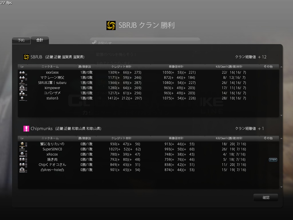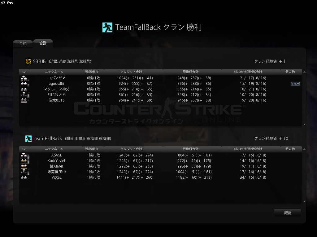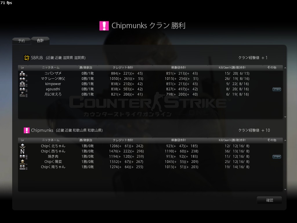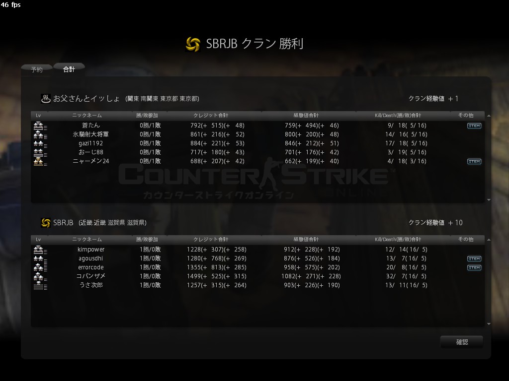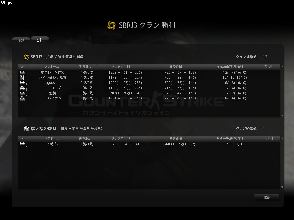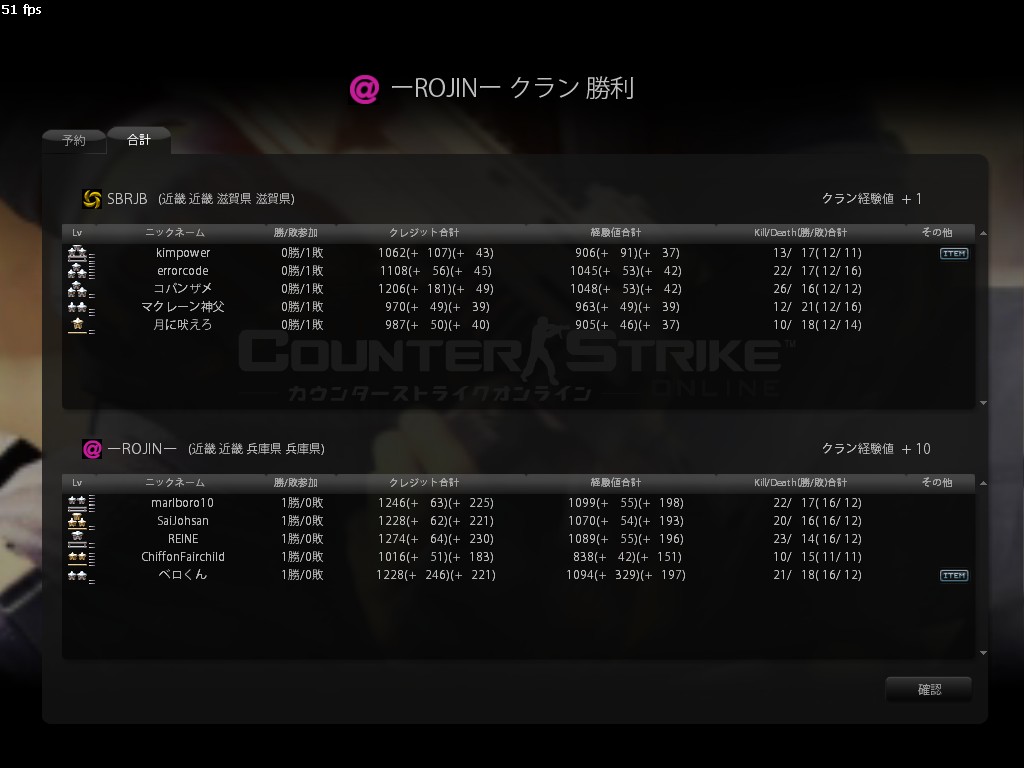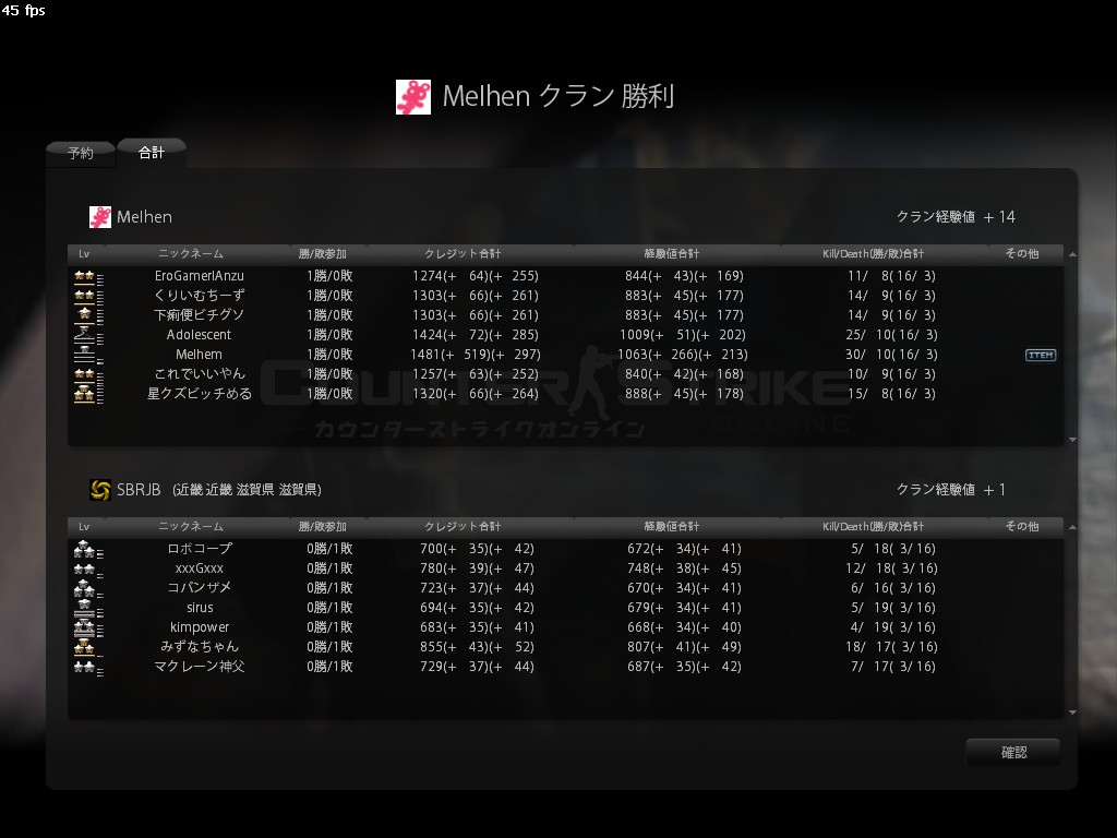 1試合目です。力負けですね>< vs TeamFallBackさん TRがラウンドが取れたので後半はあせらずにできました。 2試合ありがとうございましたm(__)m vs Chipmunksさん 当たって砕けろでした! vs 4LDKさん 久しぶりの6-6、楽しかったです。 |