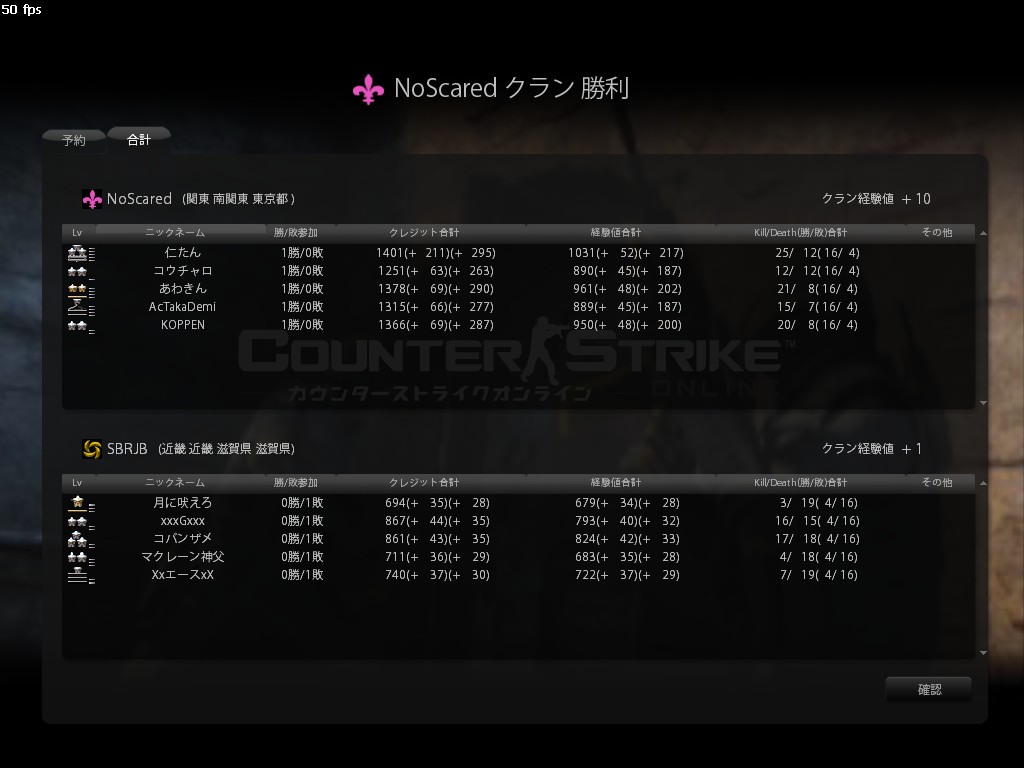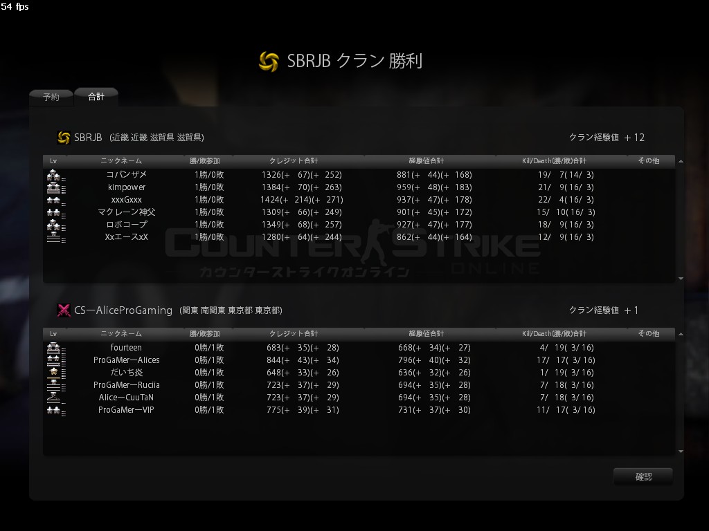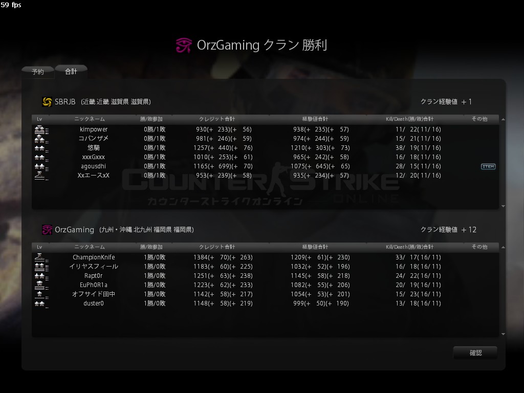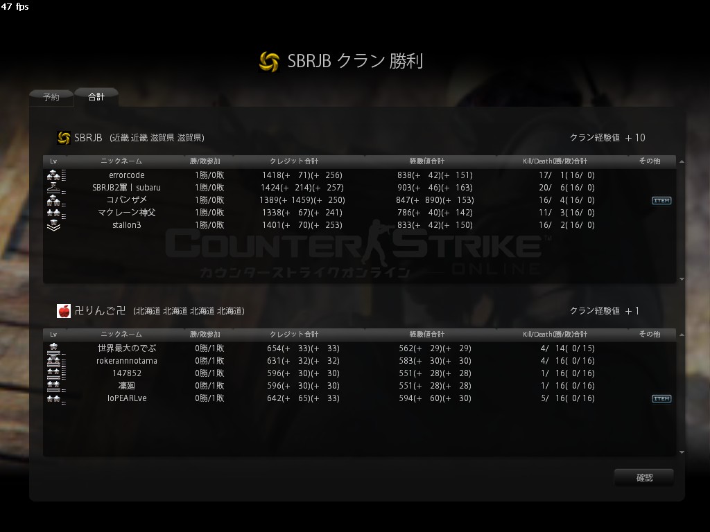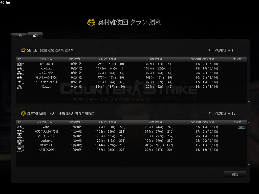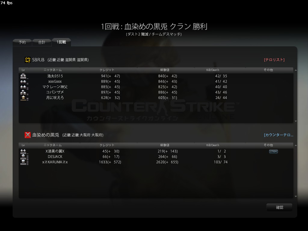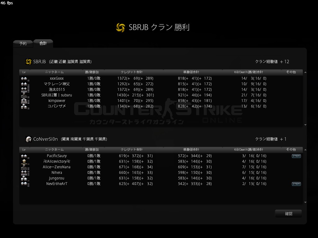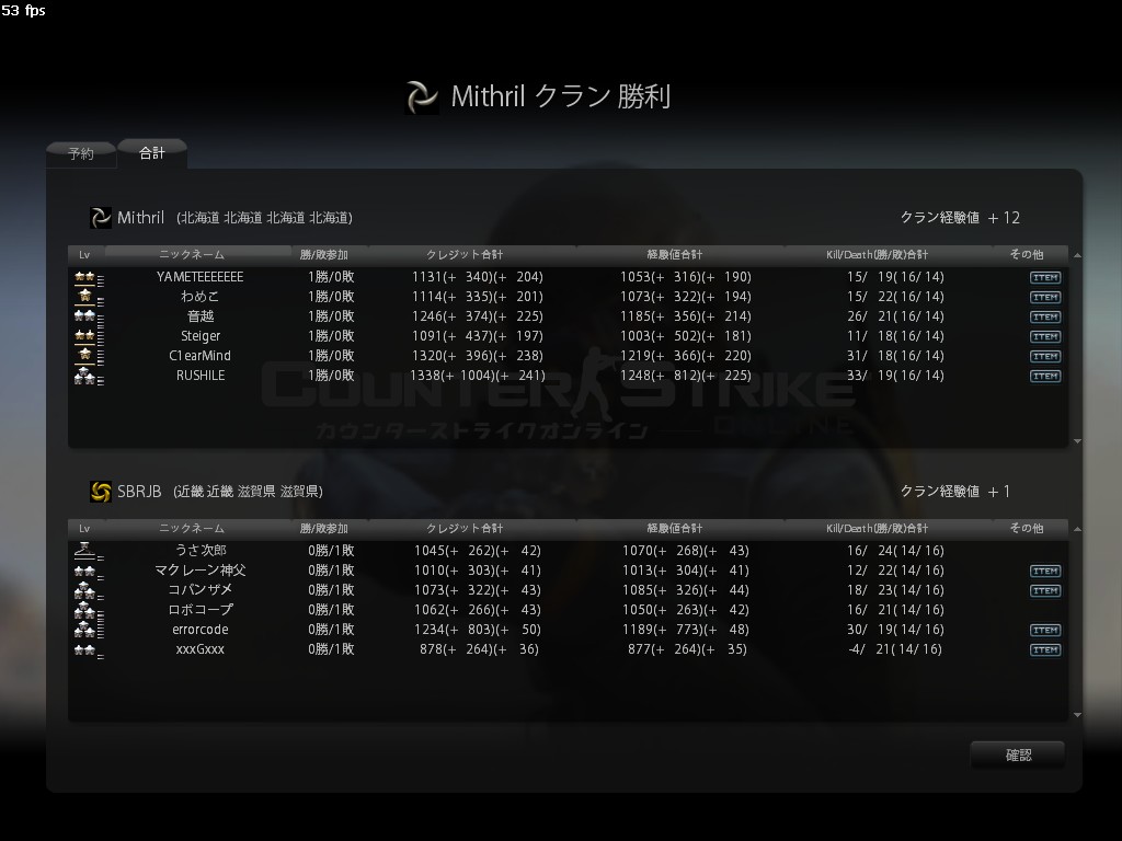 1試合目です。力負けですね>< vs TeamFallBackさん TRがラウンドが取れたので後半はあせらずにできました。 2試合ありがとうございましたm(__)m vs Chipmunksさん 当たって砕けろでした! vs 4LDKさん 久しぶりの6-6、楽しかったです。 |