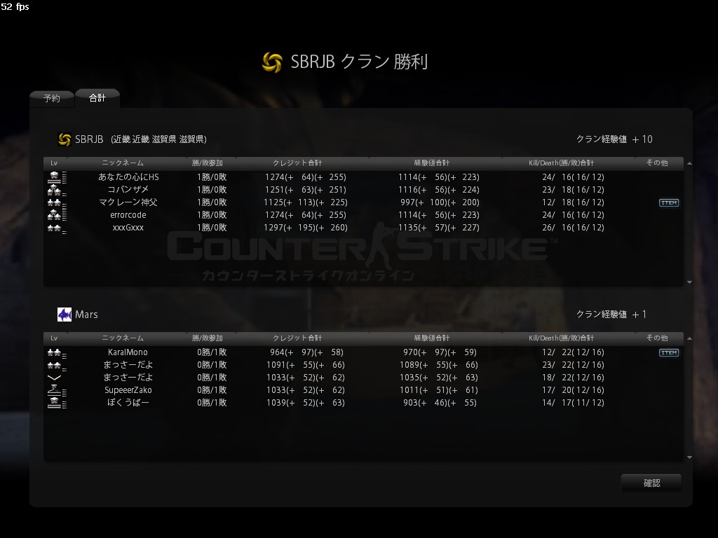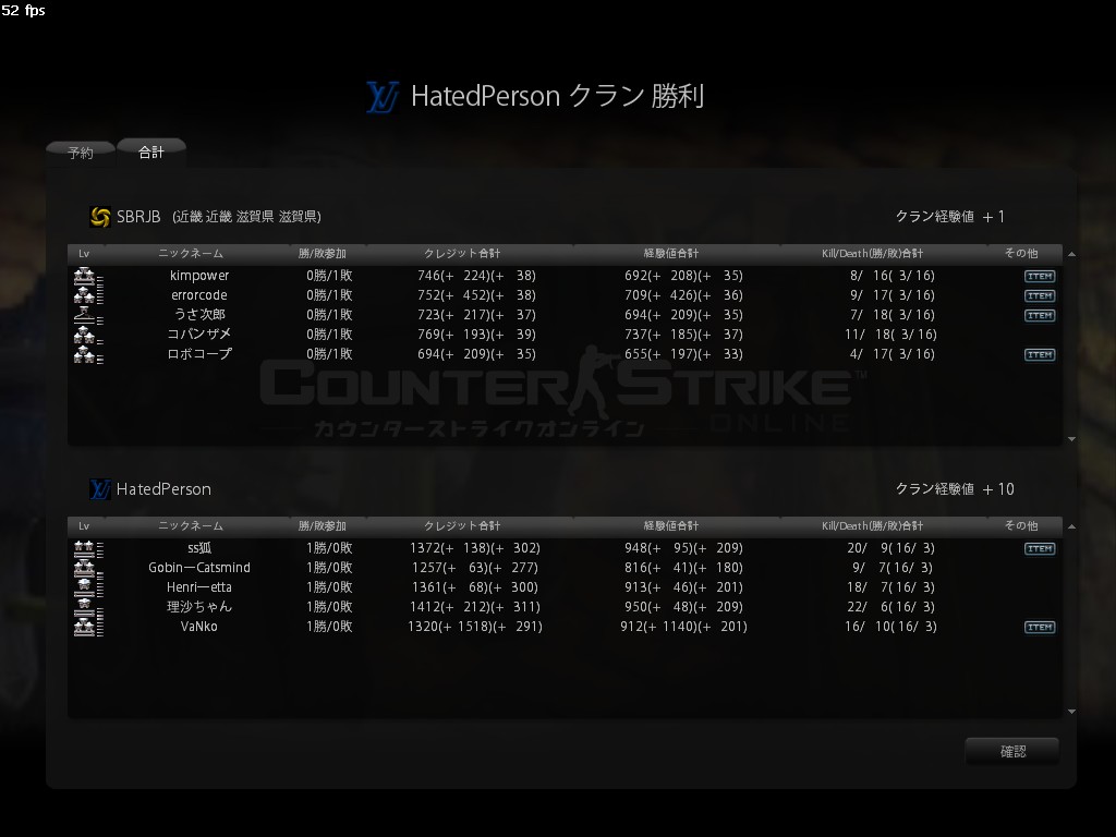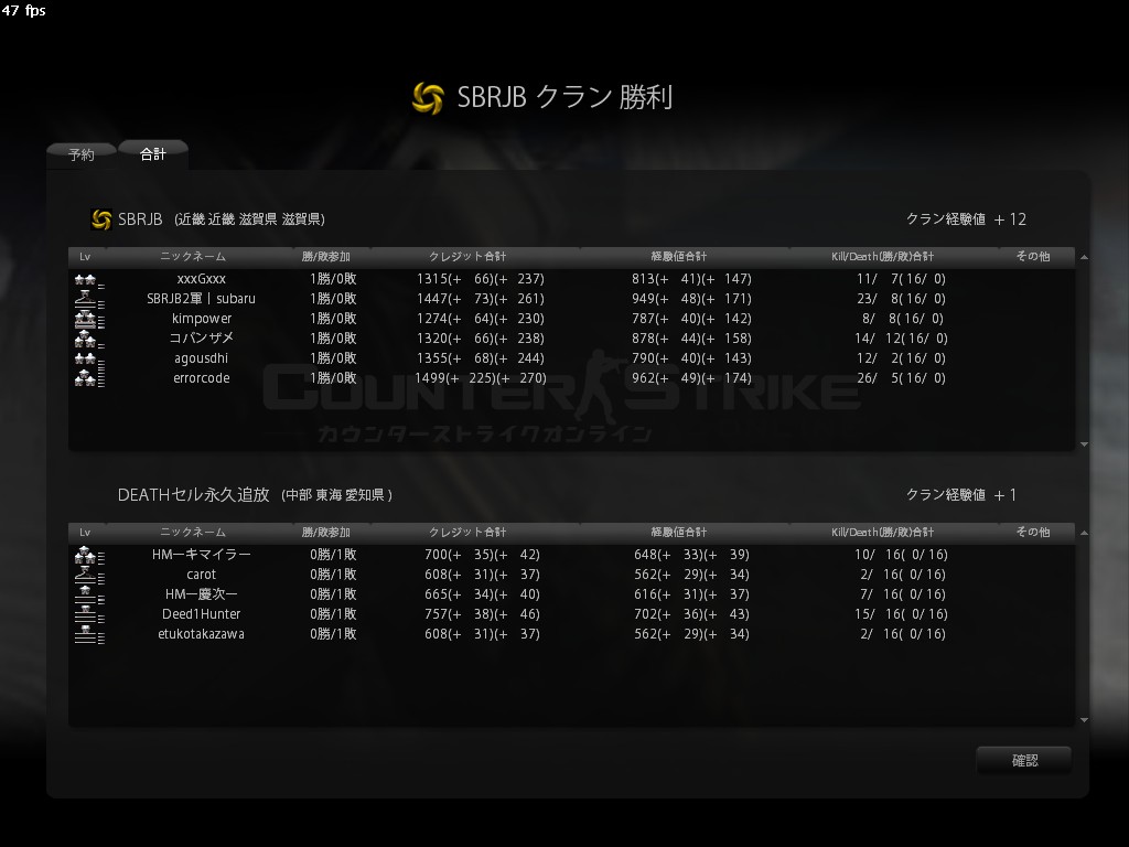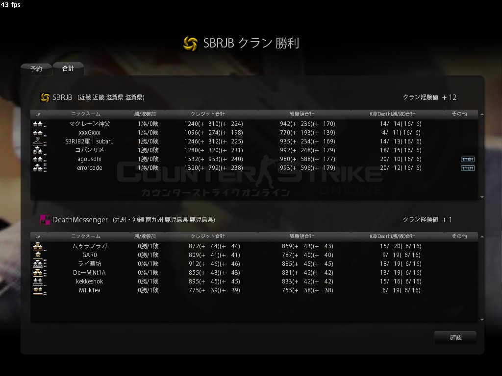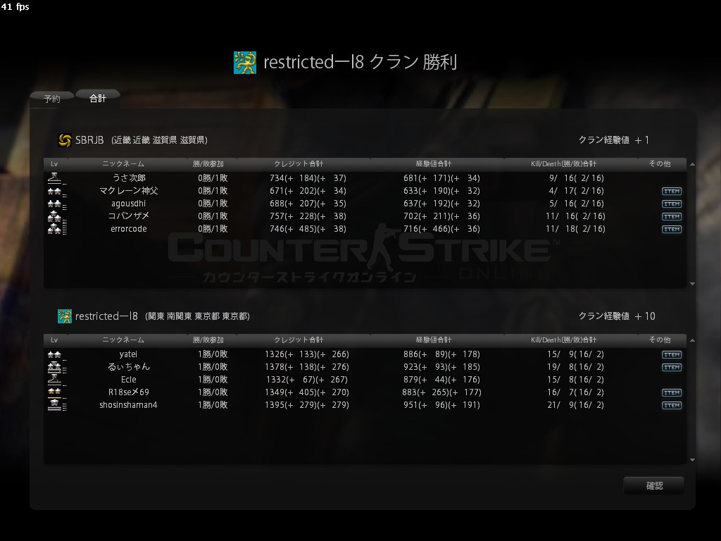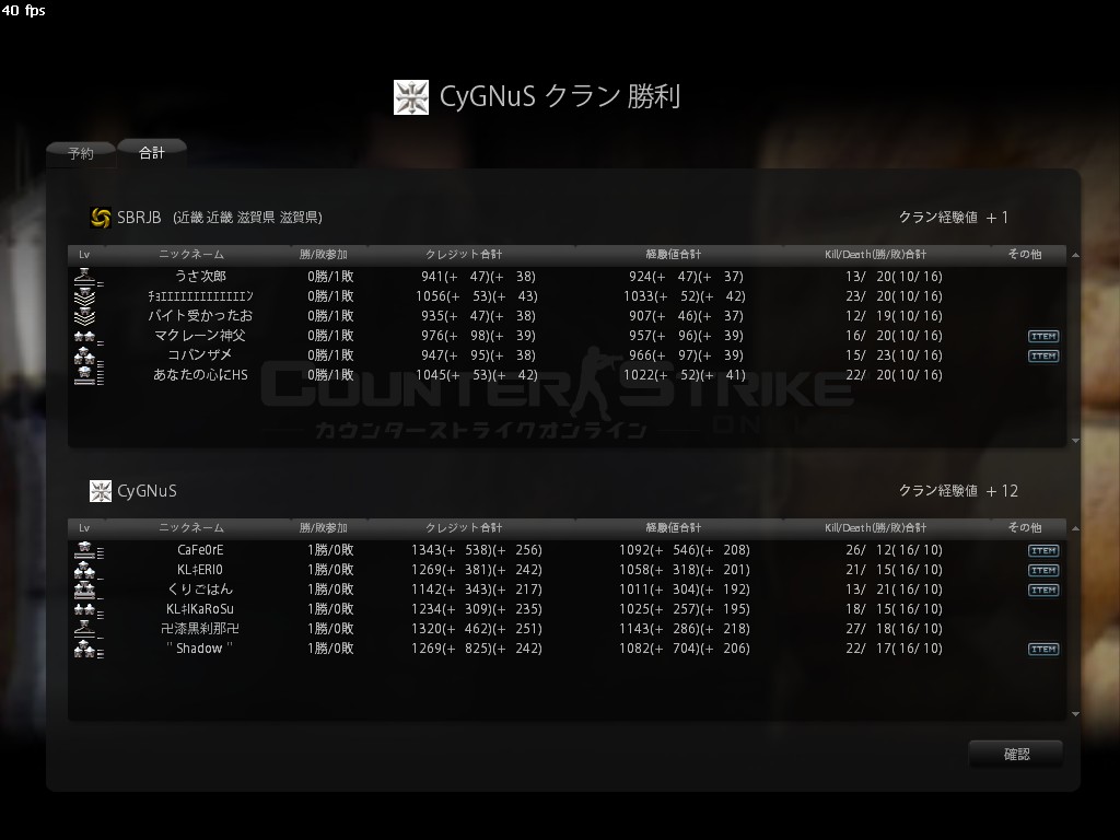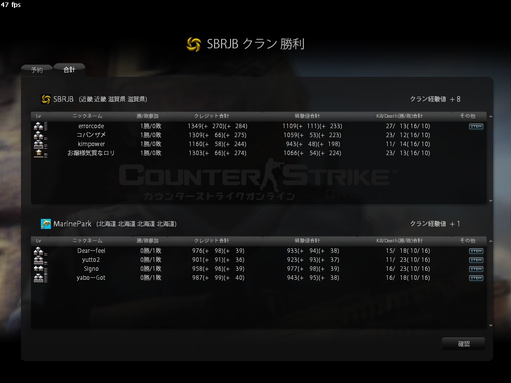 1試合目です。力負けですね>< vs TeamFallBackさん TRがラウンドが取れたので後半はあせらずにできました。 2試合ありがとうございましたm(__)m vs Chipmunksさん 当たって砕けろでした! vs 4LDKさん 久しぶりの6-6、楽しかったです。 |