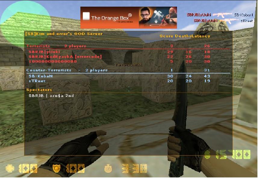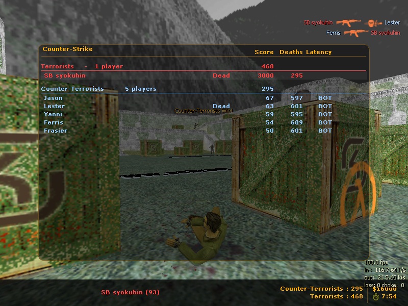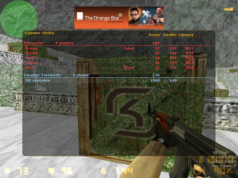 今日はまたもCS1.6で内戦しました。 SBRJBのサーバーにデスマッチが導入されて早速やってました!(〃)`ωY ;: しかーし、やっといい感じにあたってきたころでサーバーdown(lli ロ)゜゜ まあこんなこともありますよね・・・。 |